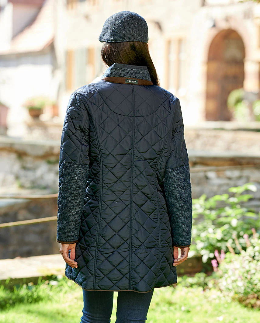 Steppmantel ''Gabby'' mit Tweed Besatz in navy